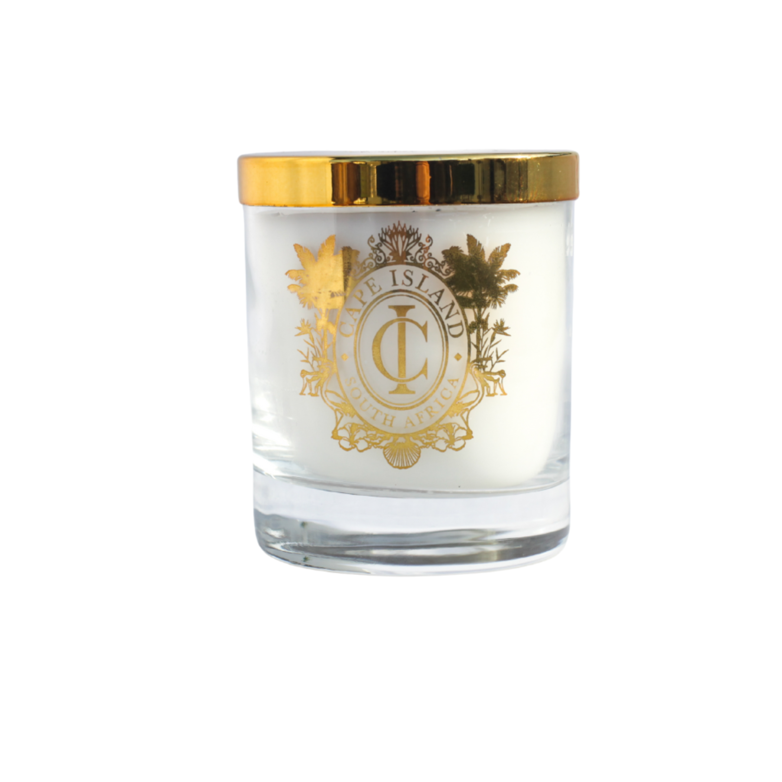 Our candles are hand poured in South Africa, using a soy wax blend and finest perfume oils imported from the Grasse region of France. The elegant Cape Island glass cup can be rinsed and recycled once the candle is done.
